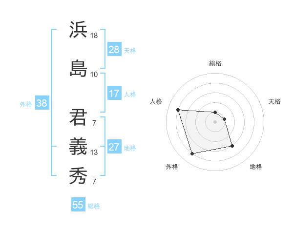 浜島 君義秀さんを姓名の画数から五運を鑑定