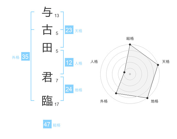 与古田 君臨さんを姓名の画数から五運を鑑定