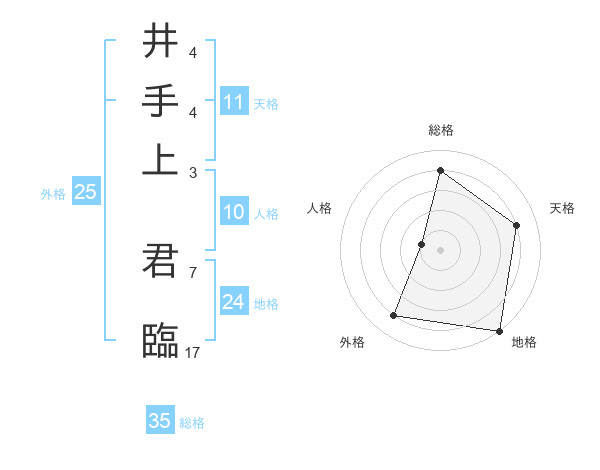 井手上 君臨さんを姓名の画数から五運を鑑定