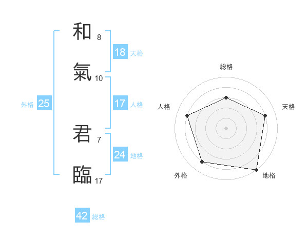 和氣 君臨さんの総格は42画の3点!