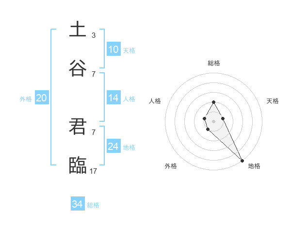 土谷 君臨さんの総格は34画の2点!