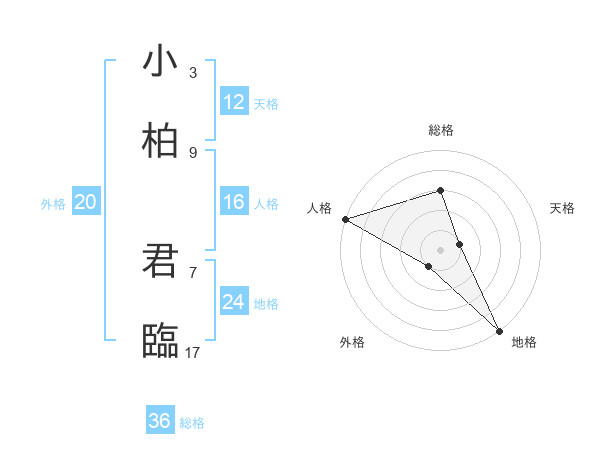 小柏 君臨さんの天格は12画の1点!
