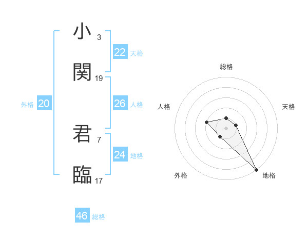 小関 君臨さんの総格は46画の1点!