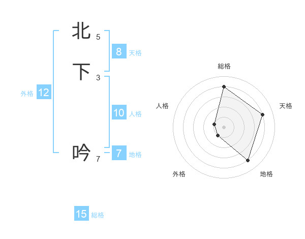 北下 吟さんの総格は15画の4点!