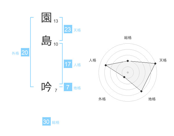 園島 吟さんの天格は23画の5点!