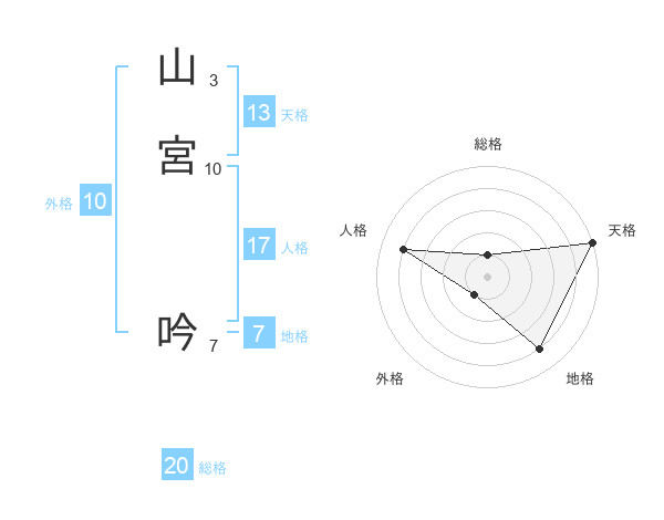 家系が持つ宿命的な運勢を表します。祖先から受け継いだ苗字ですので自分の力が及びません。家柄を象徴します。