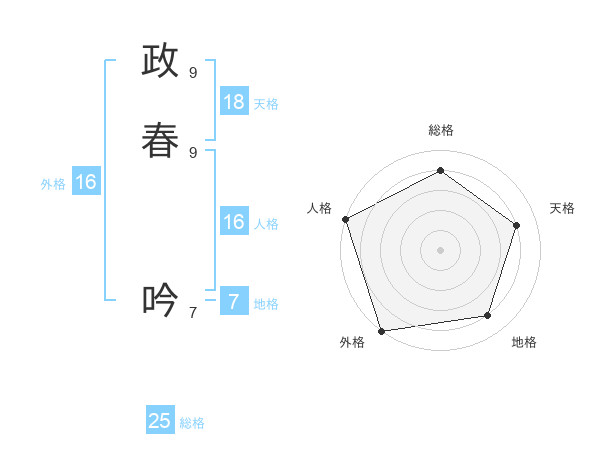政春 吟さんの外格は16画の5点!