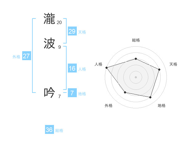 瀧波 吟さんを姓名の画数から五運を鑑定
