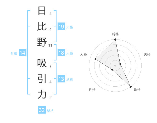日比野 吸引力さんを姓名の画数から五運を鑑定