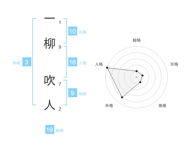 一柳 吹人さんを姓名の画数から五運を鑑定