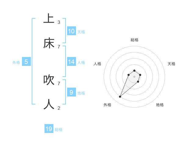 上床 吹人さんの総格は19画の1点!