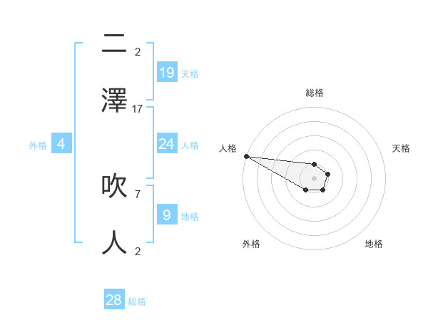 二澤 吹人さんを姓名の画数から五運を鑑定