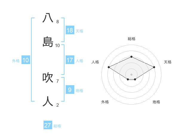 八島 吹人さんの総格は27画の3点!