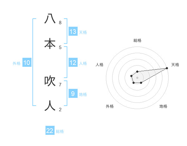 八本 吹人さんの総格は22画の1点!