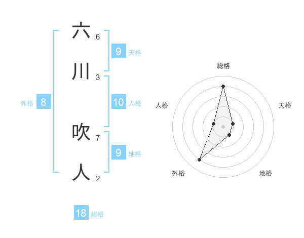 六川 吹人さんの総格は18画の4点!
