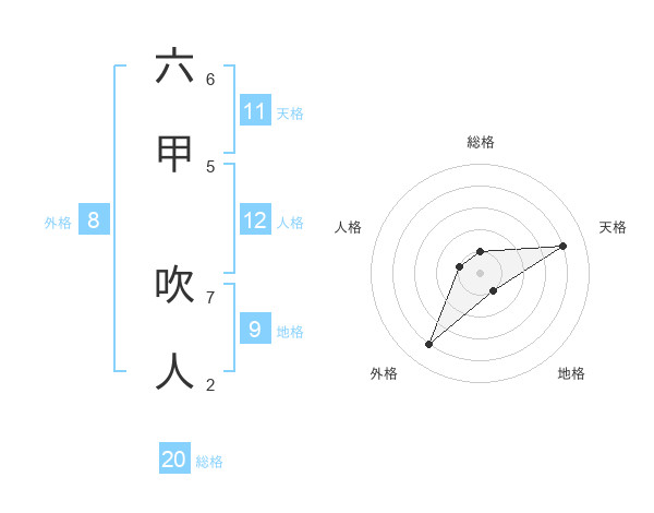 六甲 吹人さんの総格は20画の1点!