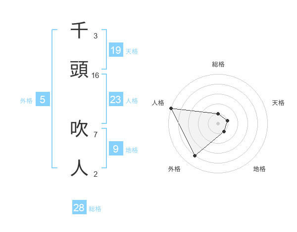 千頭 吹人さんの総格は28画の1点!