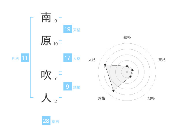 南原 吹人さんの外格は11画の4点!