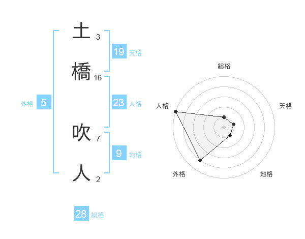 土橋 吹人さんを姓名の画数から五運を鑑定