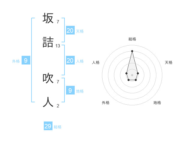 坂詰 吹人さんの総格は29画の4点!