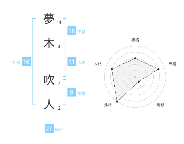 夢木 吹人さんを姓名の画数から五運を鑑定
