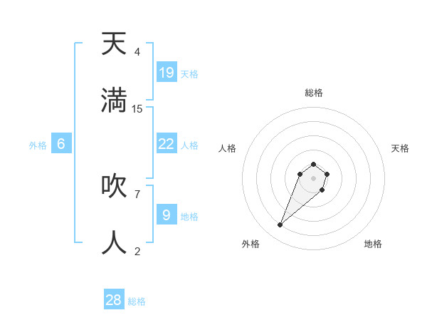 天満 吹人さんの総格は28画の1点!