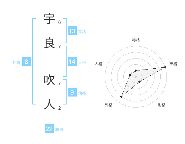 宇良 吹人さんの総格は22画の1点!