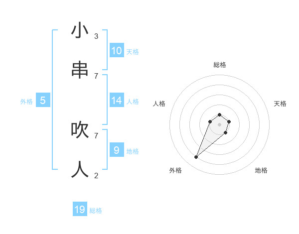 小串 吹人さんの総格は19画の1点!