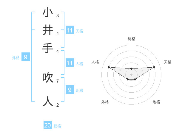 小井手 吹人さんの総格は20画の1点!