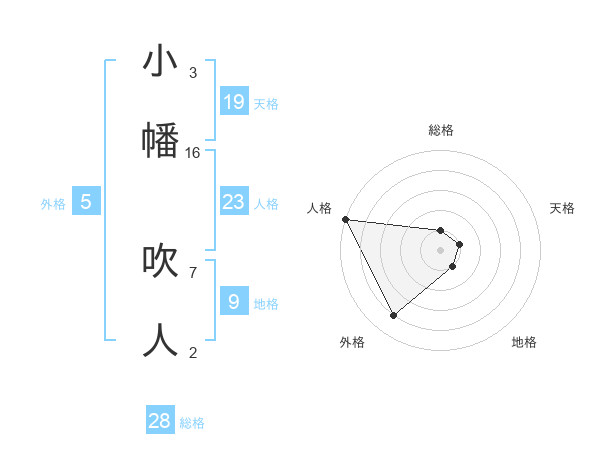 小幡 吹人さんの総格は28画の1点!