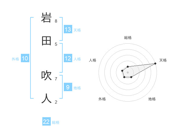 岩田 吹人さんの天格は13画の5点!
