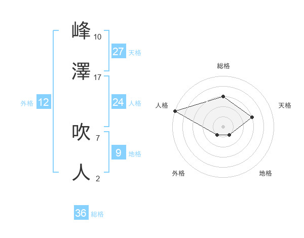 峰澤 吹人さんの総格は36画の3点!