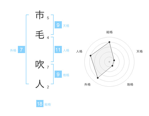 市毛 吹人さんの総格は18画の4点!