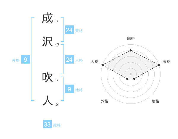成沢 吹人さんの総格は33画の4点!
