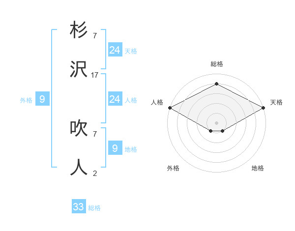 杉沢 吹人さんの総格は33画の4点!