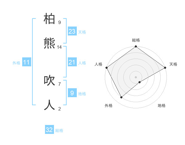 柏熊 吹人さんの総格は32画の5点!