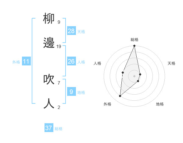 柳邊 吹人さんを姓名の画数から五運を鑑定