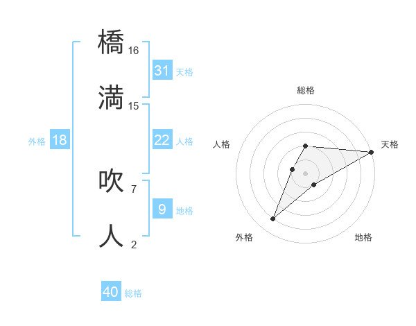 橋満 吹人さんの総格は40画の2点!