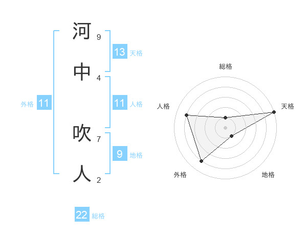 河中 吹人さんの天格は13画の5点!