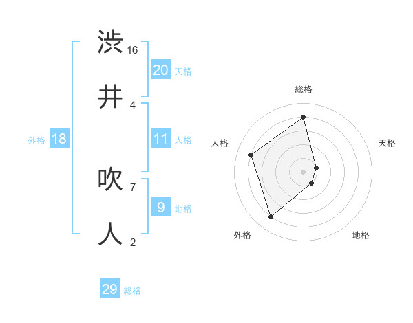 渋井 吹人さんを姓名の画数から五運を鑑定