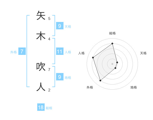 矢木 吹人さんの総格は18画の4点!