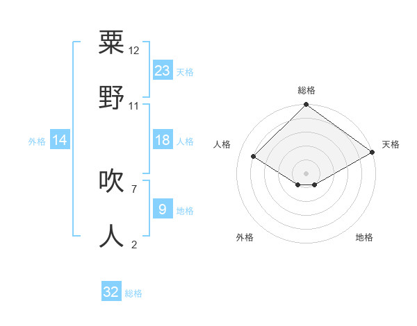 粟野 吹人さんの総格は32画の5点!