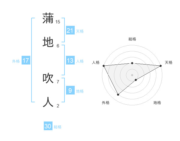 蒲地 吹人さんを姓名の画数から五運を鑑定