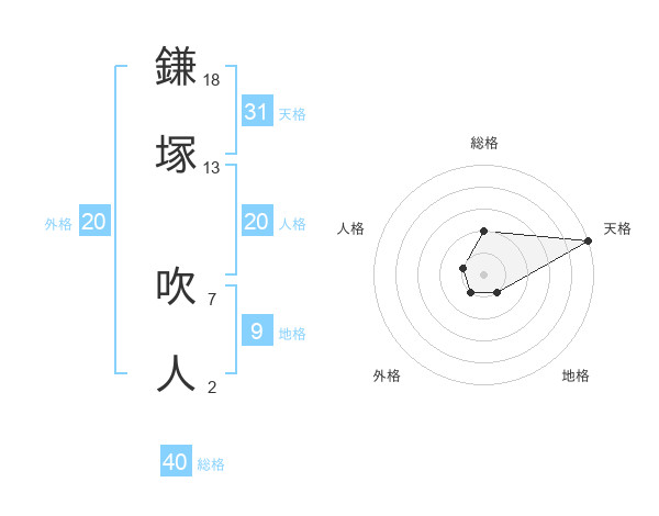 鎌塚 吹人さんの天格は31画の5点!