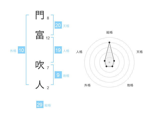 家系が持つ宿命的な運勢を表します。祖先から受け継いだ苗字ですので自分の力が及びません。家柄を象徴します。