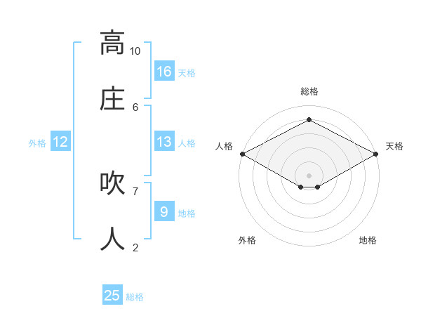 高庄 吹人さんの総格は25画の4点!