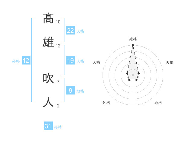 髙雄 吹人さんの総格は31画の5点!