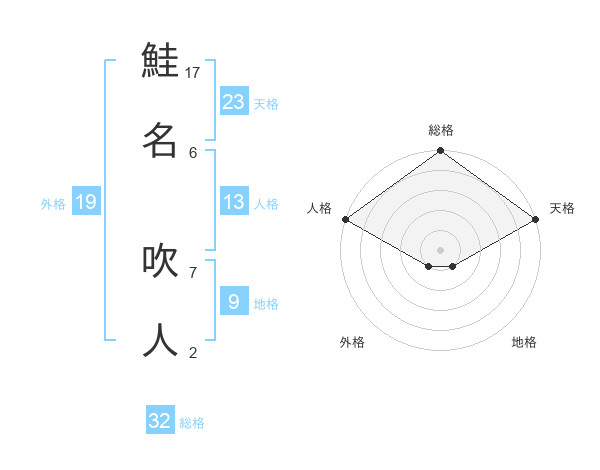 鮭名 吹人さんを姓名の画数から五運を鑑定