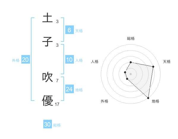 土子 吹優さんの総格は30画の2点!