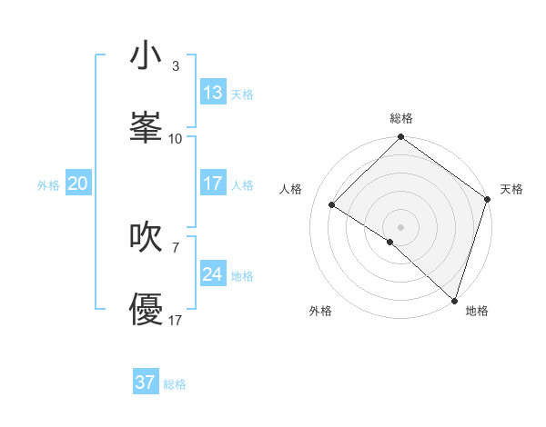 小峯 吹優さんを姓名の画数から五運を鑑定